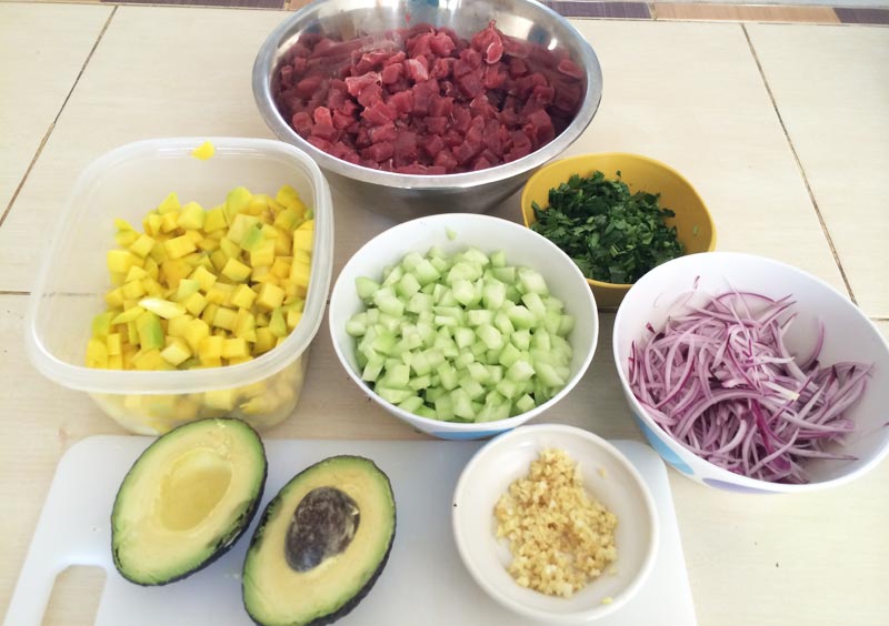 – 400 gr de atún fresco cortado en cuadritos pequeños